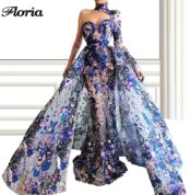 One Shoulder Long Sleeve Lace Floral Evening Gown – Festival de Soiree Dress