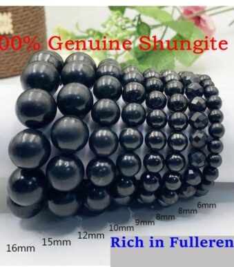 100% Natural Russian Shungite Bracelet, Healing Gem stone Jewelry Bracelet, 6mm 8mm 12mm 16mm Choices – Rich in Fullerenes